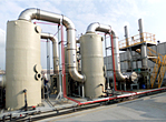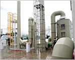 洗滌塔 氣進入滌氣塔後,在填充層內加洗滌液其液體與廢氣會因氣流離心力的關係進行吸收、附著、中和其廢氣中的粒子,再將廢氣進行淨化洗滌、再由除霧層之慣性力及靜電等作用分離出液體及無害氣體。