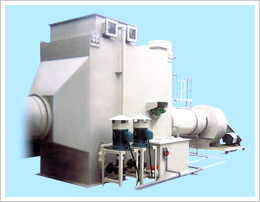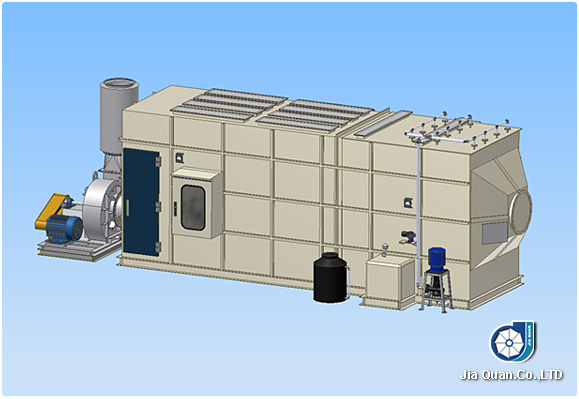 處理方式 : 利用內部PP填充物增加氣體與液體接觸面積、有效將廢氣中之酸鹼成分融入水中。